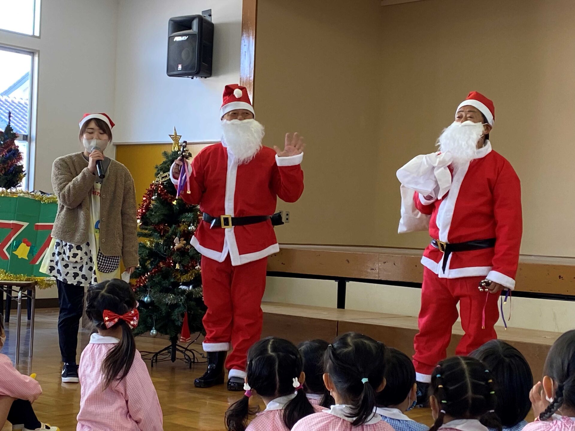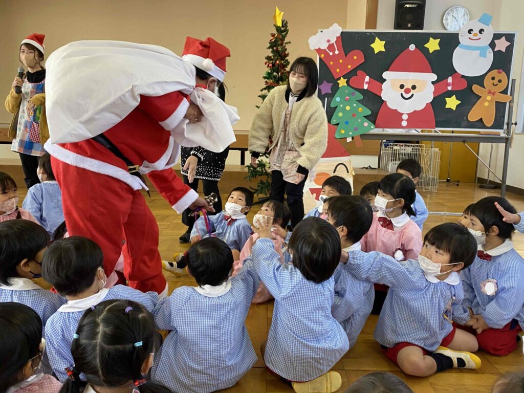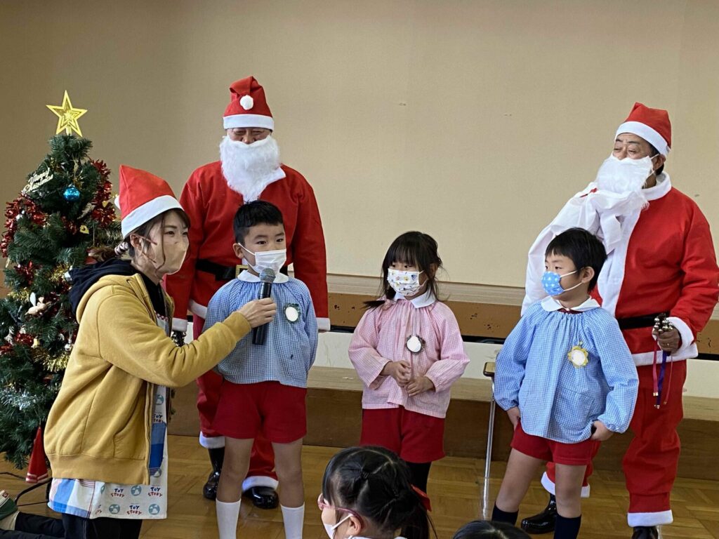 たのしいクリスマス🎄 2025.12.12 2022.12.22 サンタさんの登場!! サンタさんに聞いてみました! みんなと元気いっぱい踊ったよ! みんなと一緒に歌ったよ♪ サンタさんと一緒に歌って楽しかった~! 来年も来てね!!